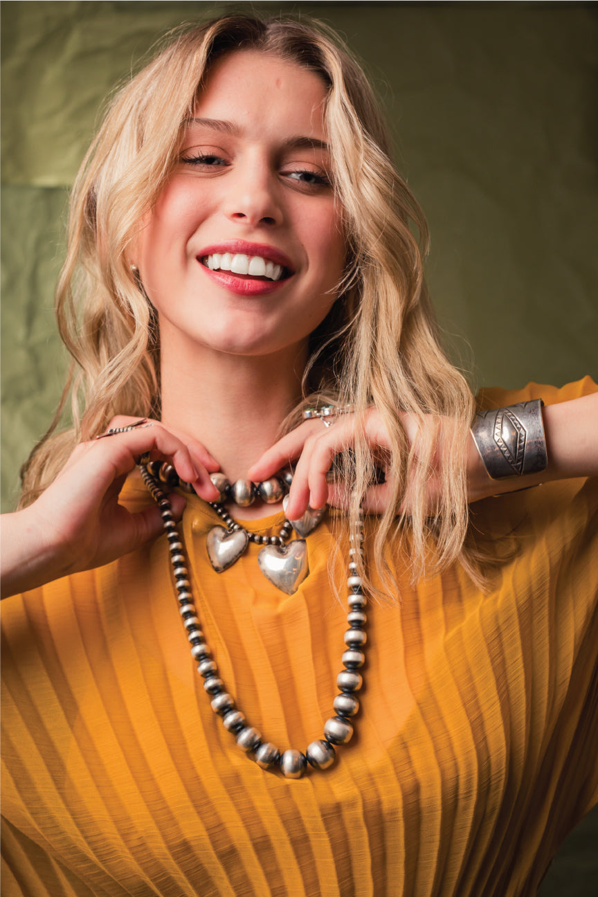 The beautiful style of jewelry called Desert or Navajo Pearls are sterling silver beads traditionally made by Navajo (Diné) silversmiths. These handmade beads are commonly seen on Squash Blossom n...